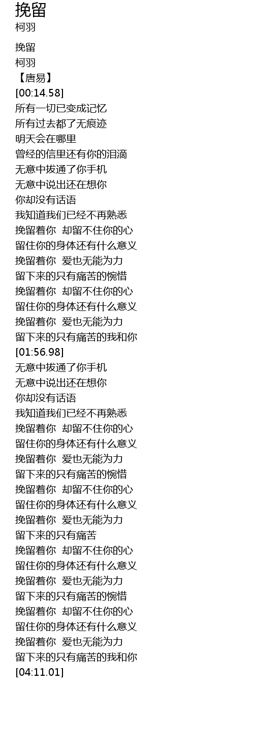 | [03:24.25] | 挽留着你 却留不住你的心 |