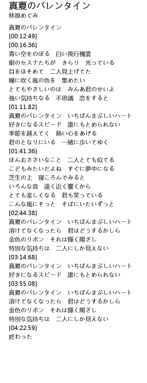 | [03:42.11] | 真夏のバレンタイン いちばんまぶしいハート |