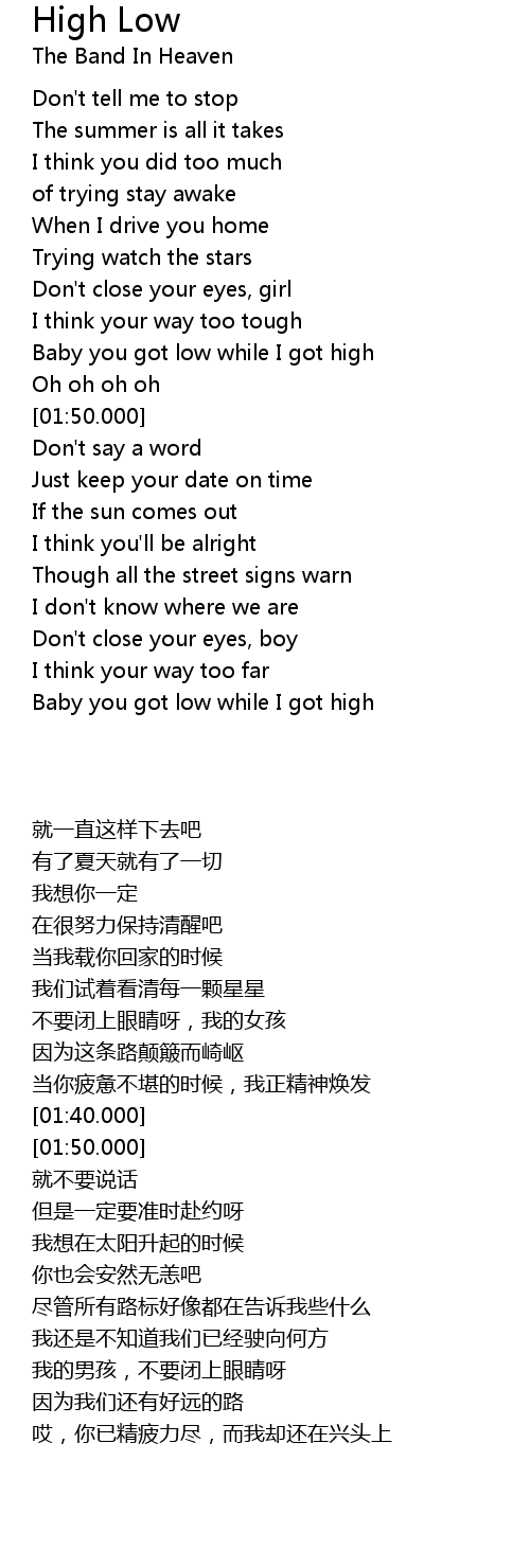 Baby you got low while I got high |