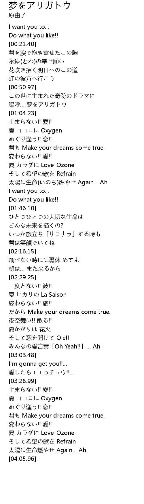 | [00:58.78] | 嗚呼… 夢をアリガトウ |