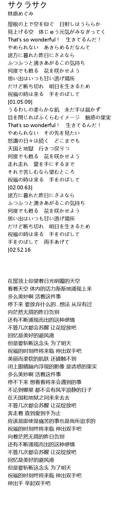 | [01:26.18] | That's so wonderful! 生きてるんだ! |