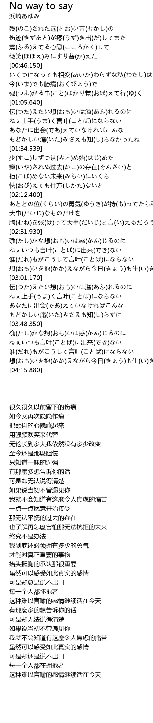 | [02:45.890] | 谁(だれ)もがこうして言叶(ことば)にならない |