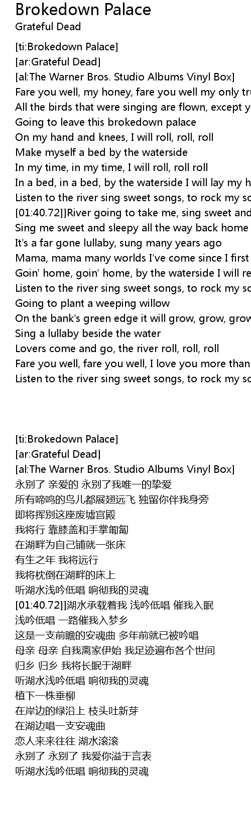 [01:40.72]] River going to take me, sing sweet and sleepy
