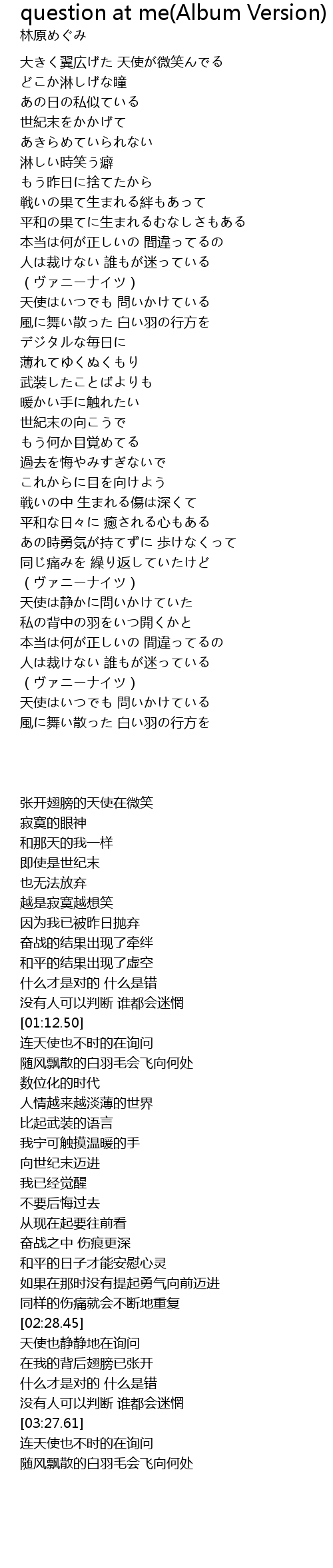 | [01:13.45] | 天使はいつでも 問いかけている |