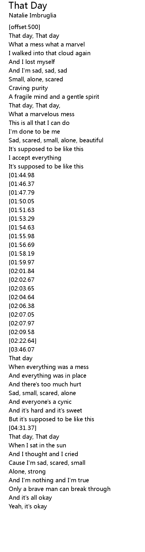 | [03:52.49][03:46.07][03:39.35][03:32.41][02:48.15][02:41.50][01:19.33] |