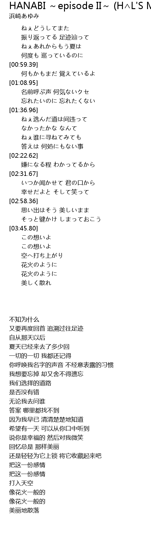 | Song | HANABI ~episode II~ (H∧L'S MIX 2003) |