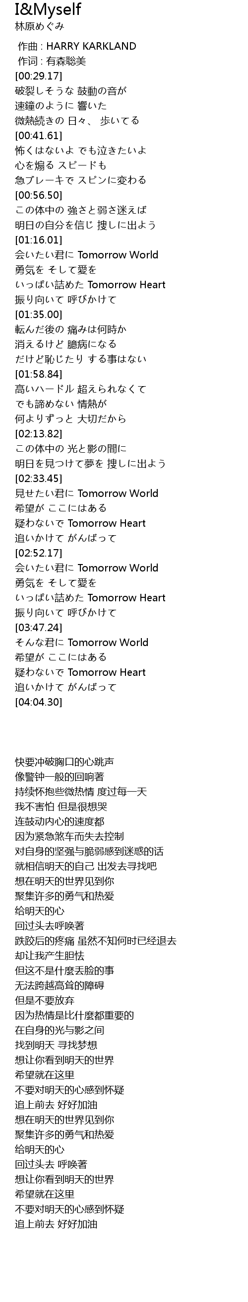 | [03:54.46] | yi Tomorrow Heart |