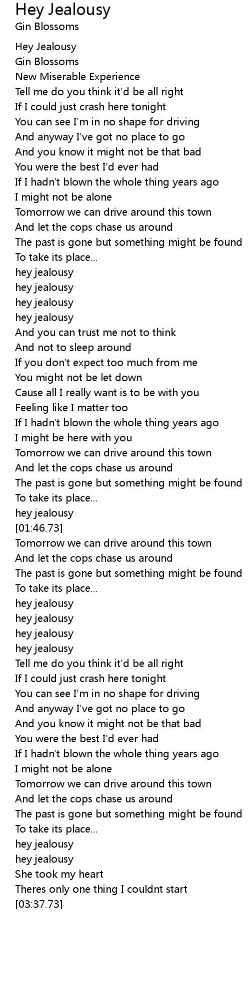 hey jealousy |
