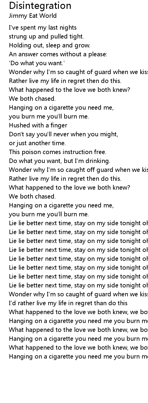Hanging on a cigarette you need me you burn me you'll burn me. |