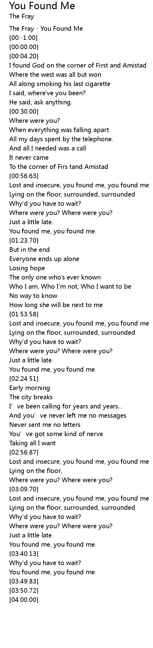 | [00:-2.00] | The Fray You Found Me |