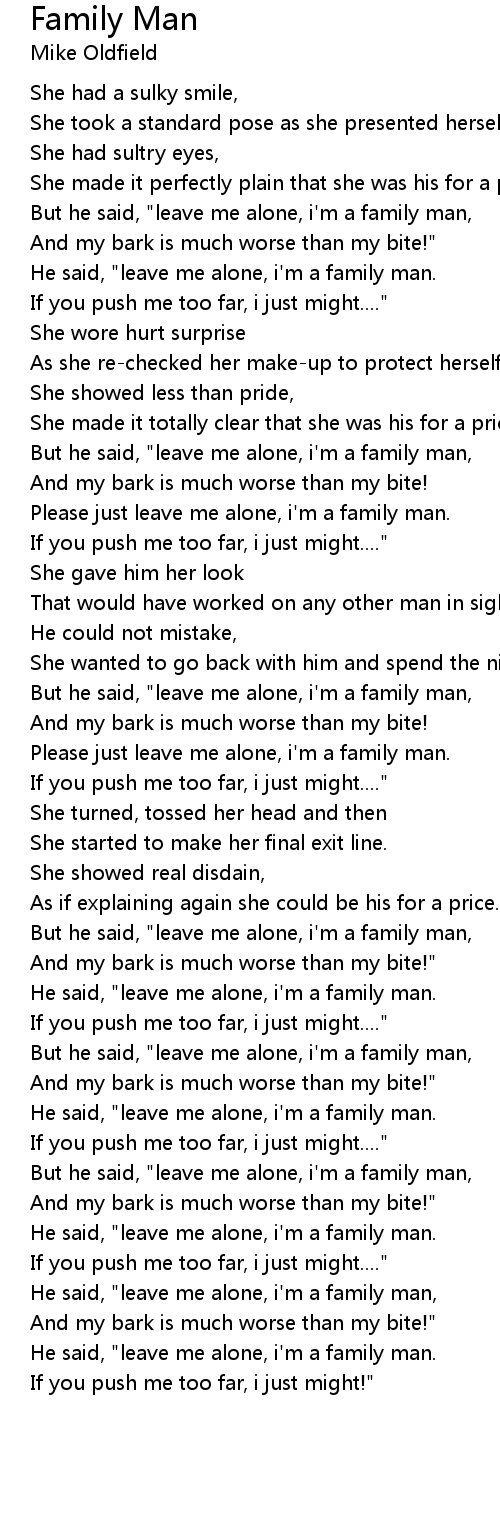 He said, "leave me alone, i'm a family man. |