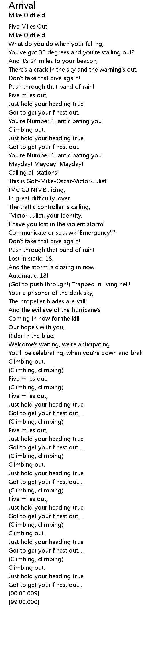 Arrival Lyrics