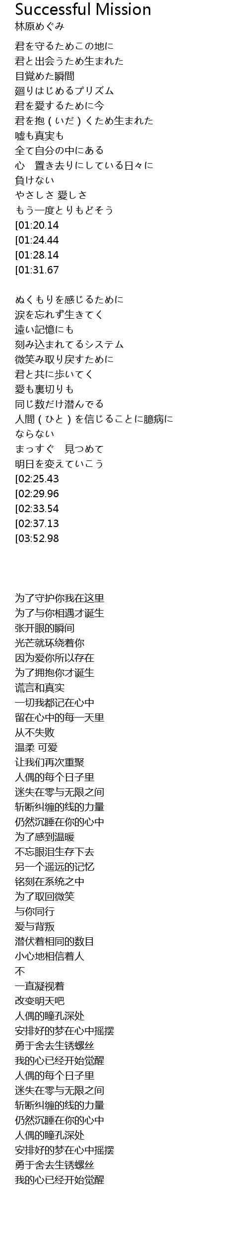 | [03:34.46][02:25.43] | からくり人形の瞳のその奥 |