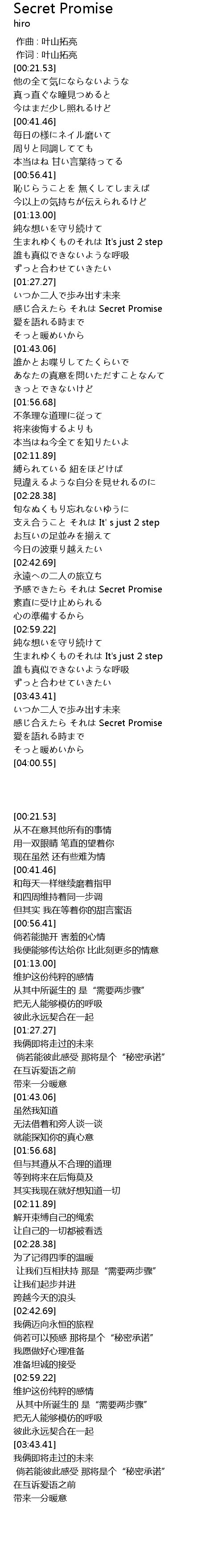 | [01:31.11] | gǎn hé Secret Promise |
