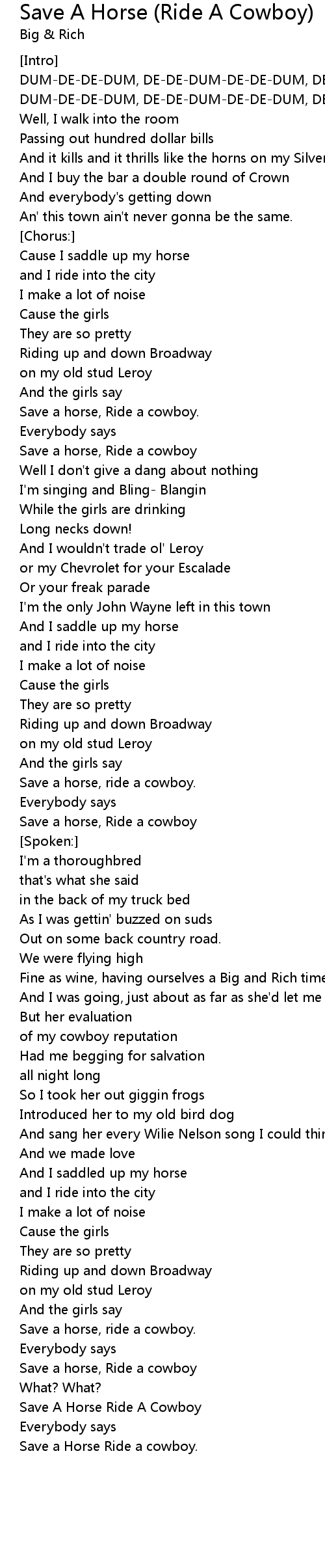 Song Save A Horse (Ride A Cowboy)