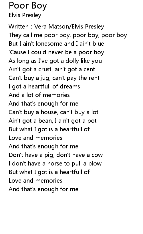 | They call me poor boy, poor boy, poor boy | |