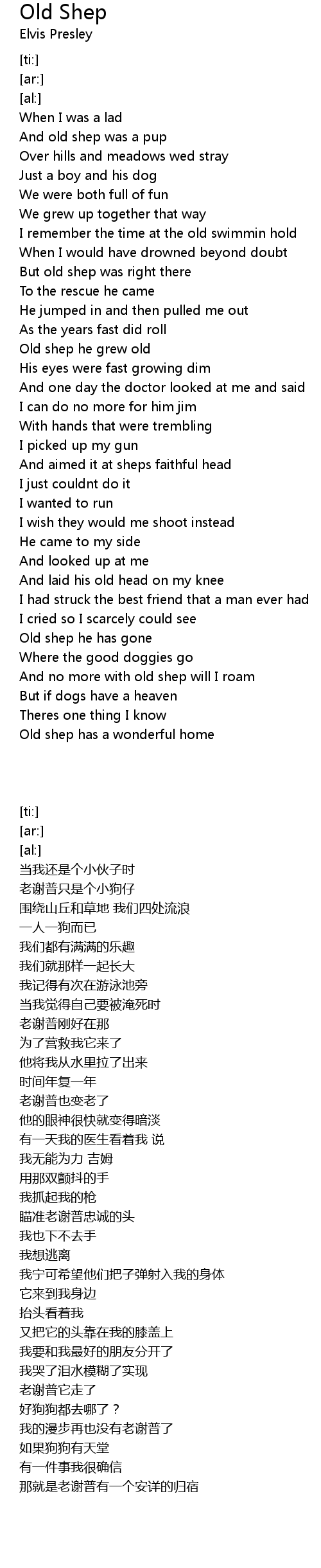 Old shep he grew old |
