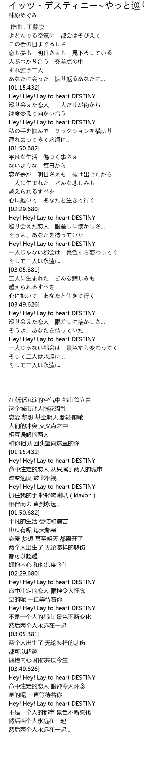 | [03:53.143] | Hey! Hey! Lay to heart DESTINY |