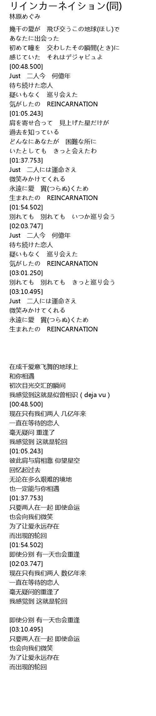 | [02:57.761] | 気がしたの REINCARNATION |