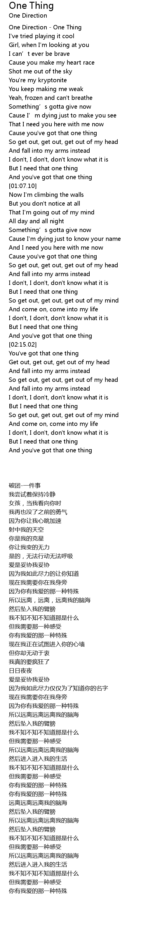 | [00:01.10] | One Direction One Thing |