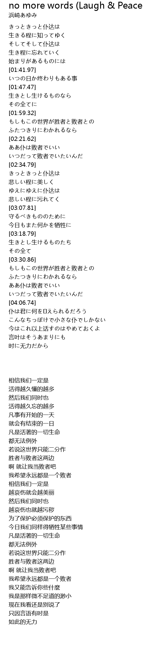 no more words (Laugh & Peace Mix) Lyrics