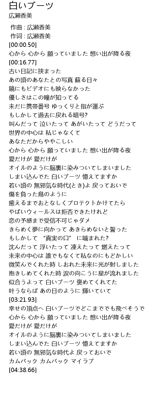 | [04:07.46] | しまい込んでた 白いブーツ 憶えてますか |