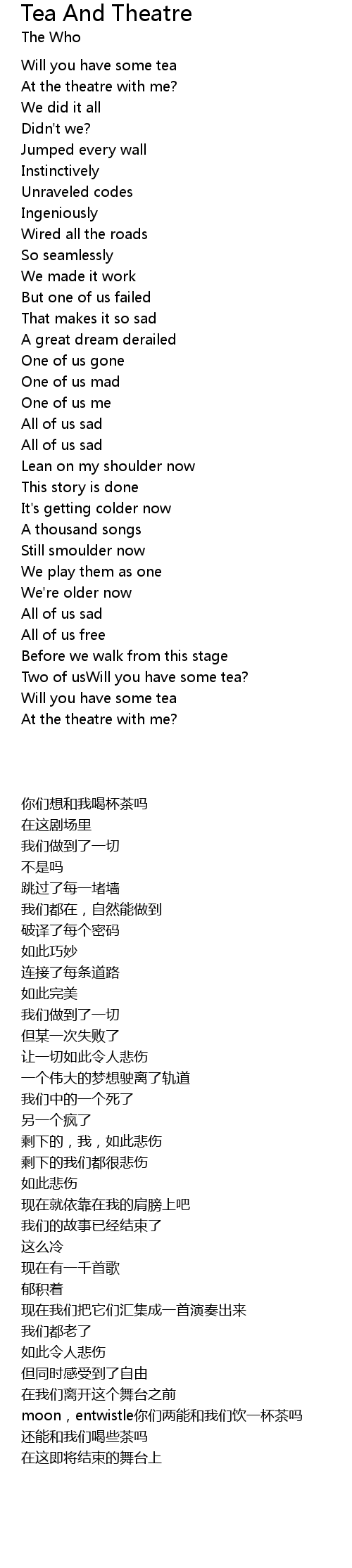 | Song | Tea And Theatre |
