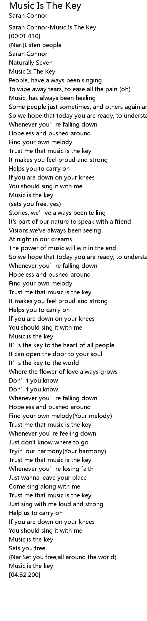 | [00:01.140] | Sarah ConnorMusic Is The Key |