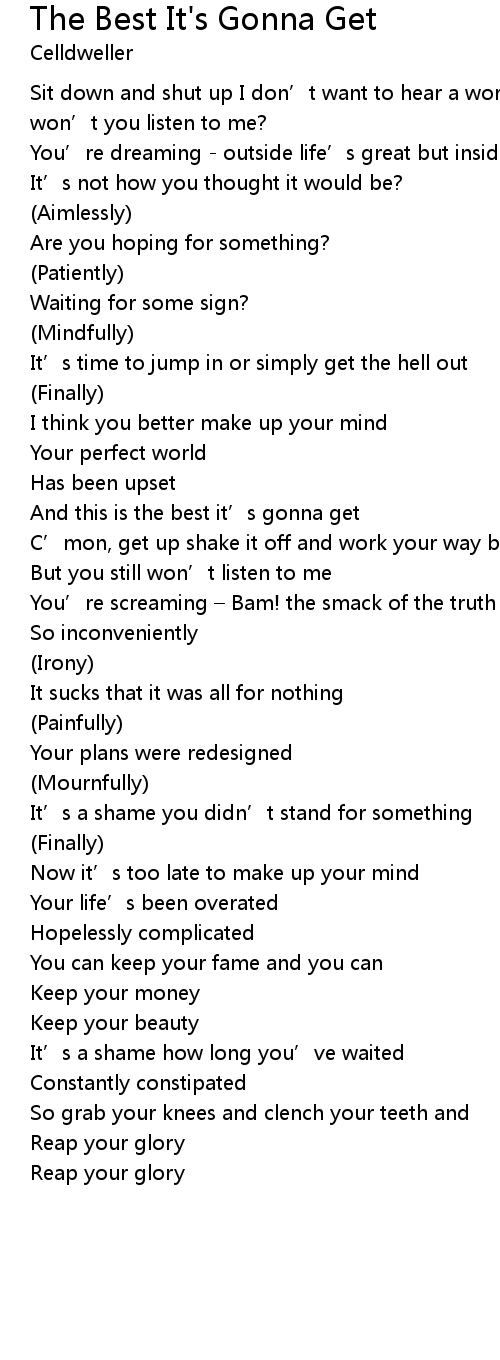 | You' re dreaming outside life' s great but inside you' re screaming | |