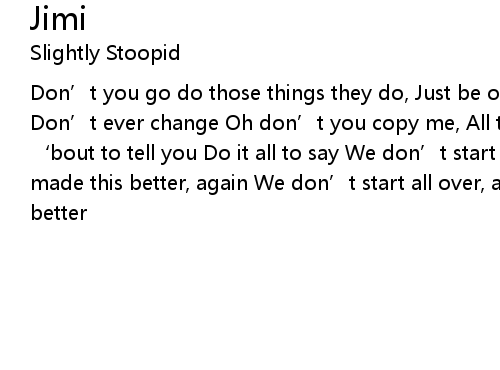| Don’t you go do those things they do, Just be original, anybody tell you Don’t ever change Oh don’t you copy me, All them things you’ve seen on TV ‘bout to tell you Do it all to say We don’t start all over, again We just made this better, again We don’t start all over, again We just made this better |