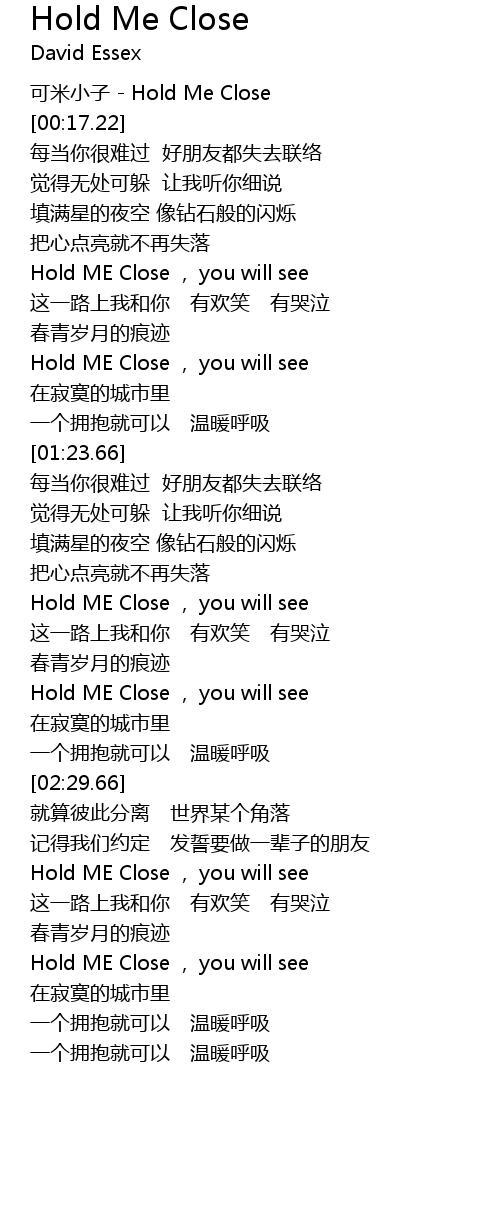| [00:06.33] | 可米小子 - Hold Me Close |