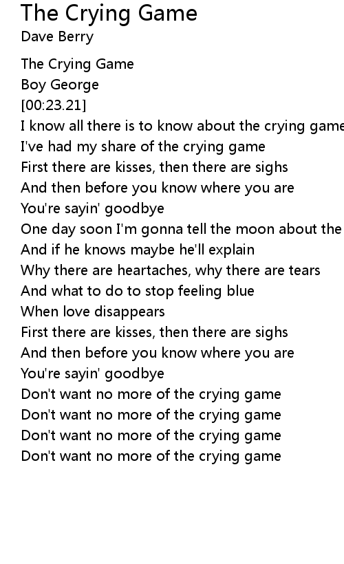 Don't want no more of the crying game |