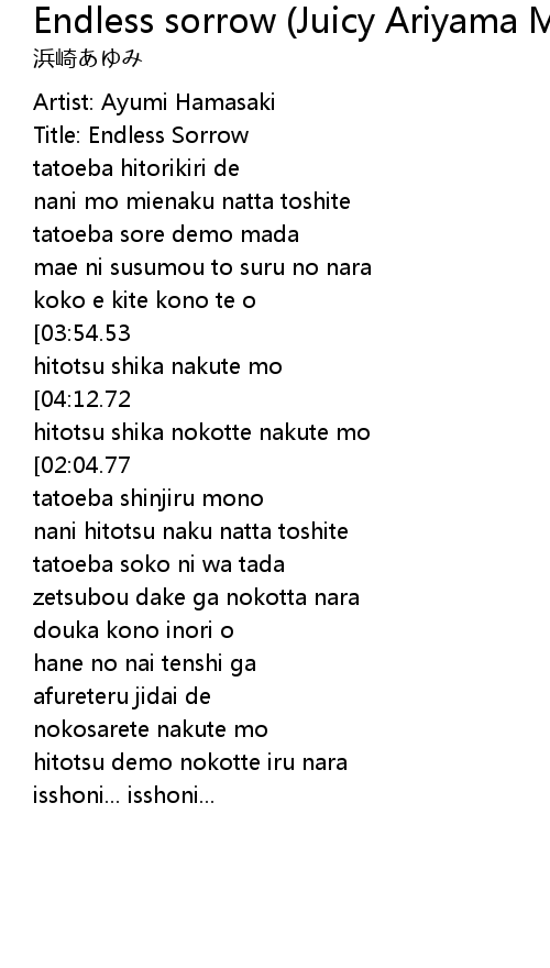 Endless sorrow (Juicy Ariyama Mix) Lyrics