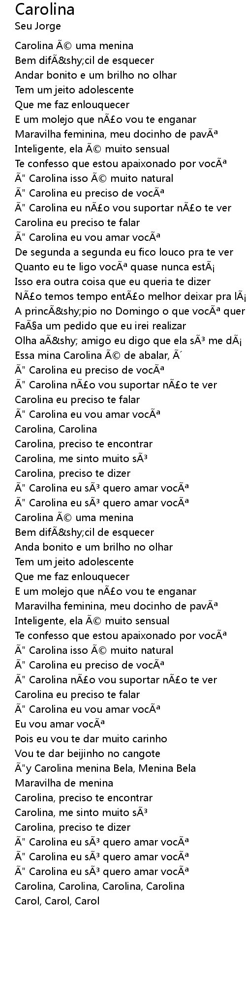 | Ã" Carolina eu só quero amar você | |