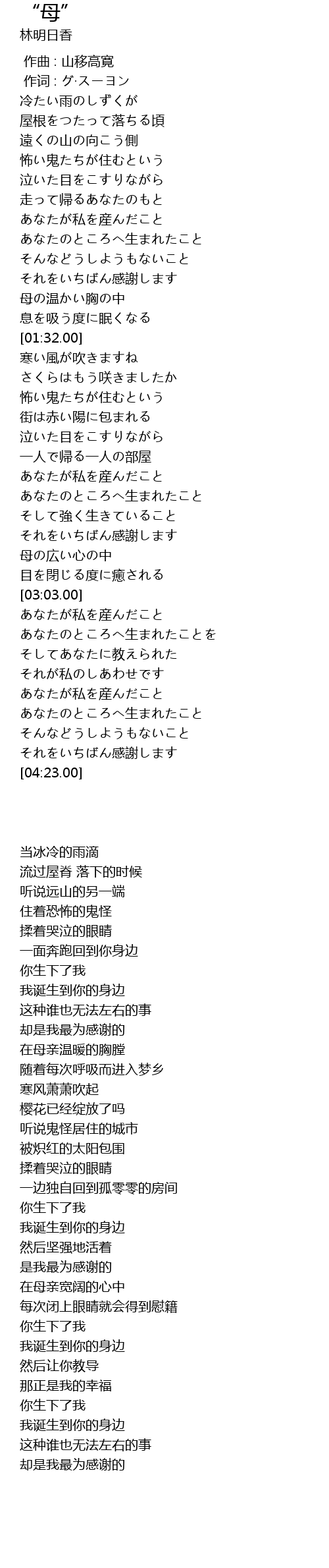 | [01:20.00] | mǔ wēn xiōng zhōng |