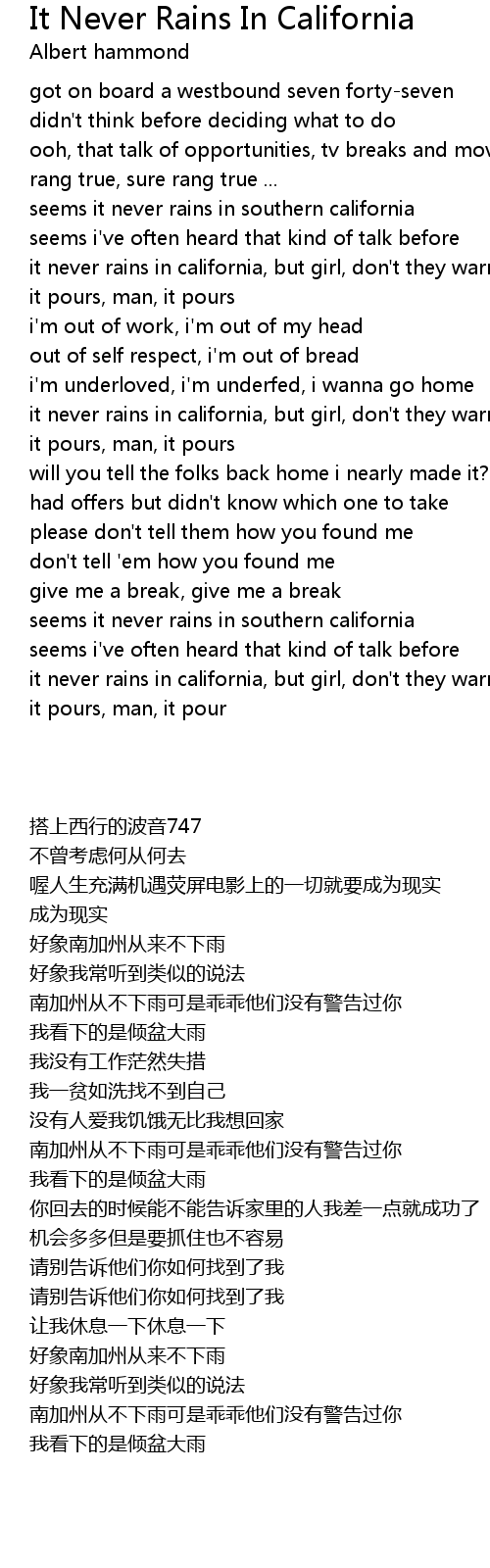 it never rains in california, but girl, don't they warn ya? |