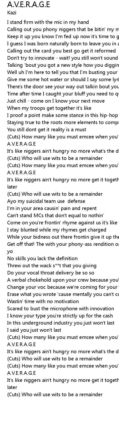 It's like niggers ain't hungry no more get it together cause sooner or later |