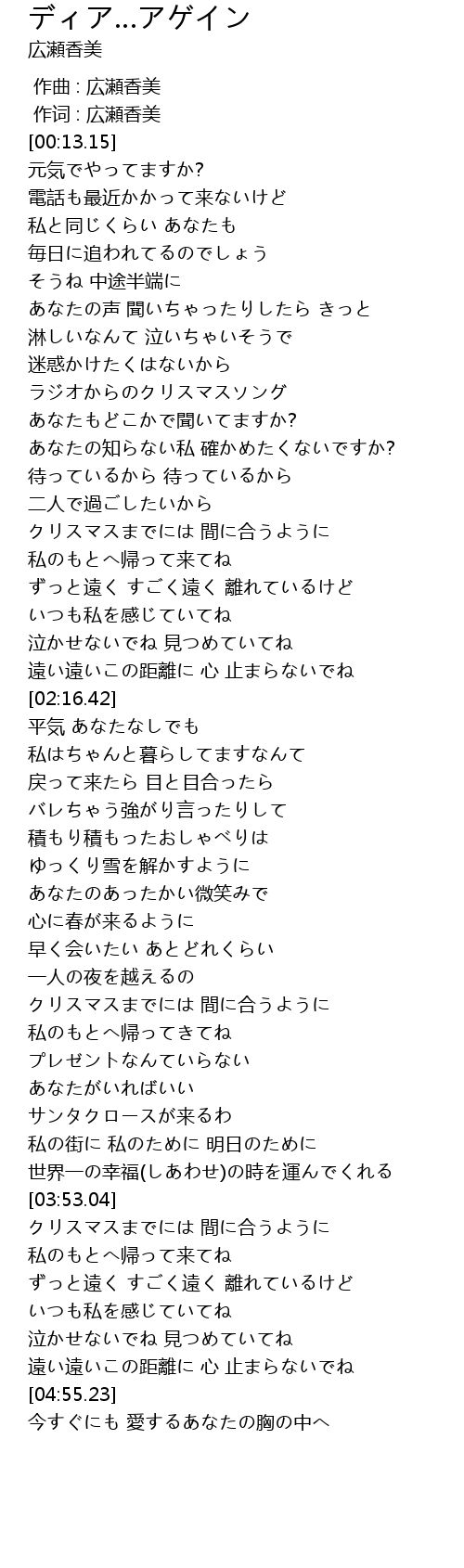 | [00:00.00] | 作曲 : 広瀬香美 |