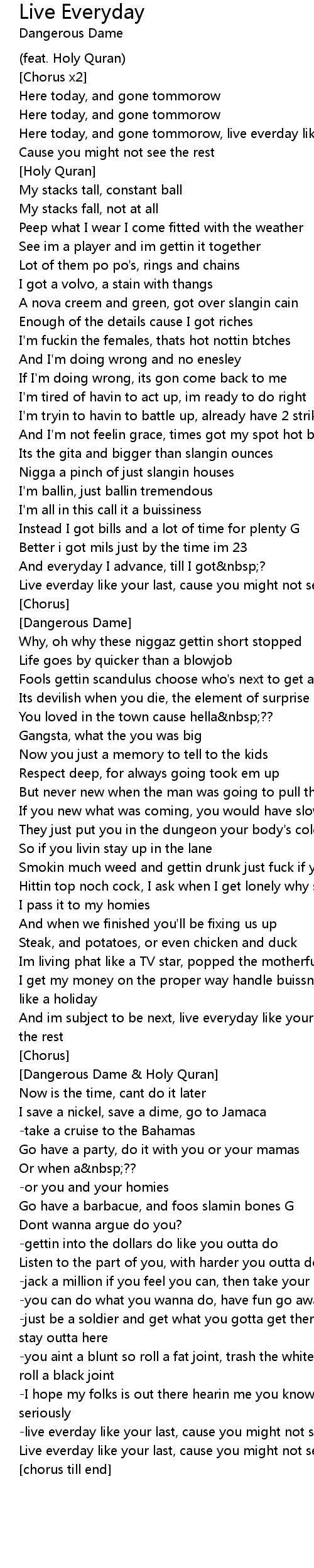 -live everday like your last, cause you might not see the rest |