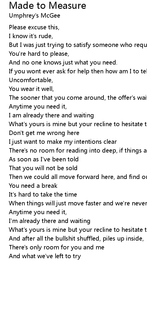 And no one knows just what you need. |