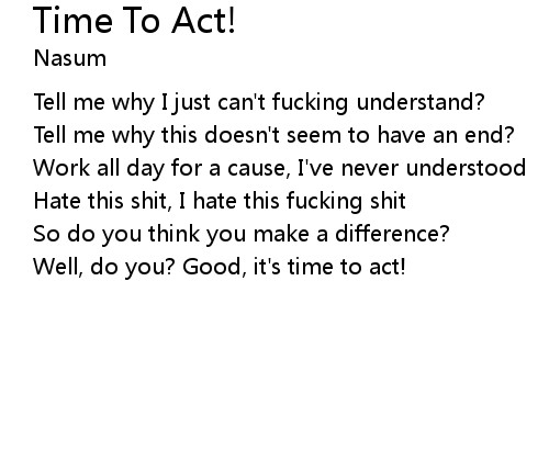 | Song | Time To Act! |