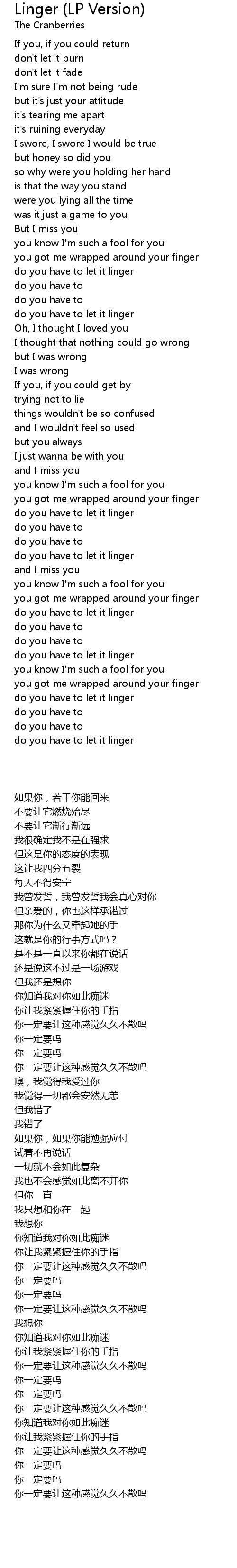 Linger (LP Version) Lyrics