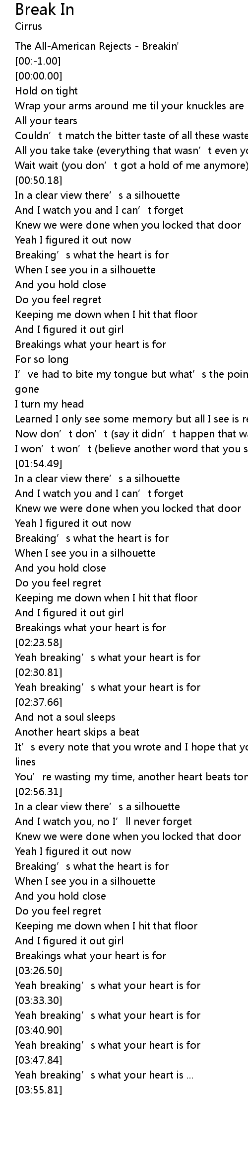 | [03:43.58] | Yeah breaking' s what your heart is for |