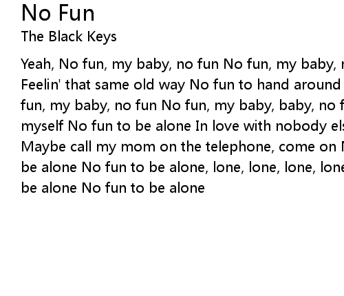 Yeah, No fun, my baby, no fun No fun, my baby, no fun No fun to hang around Feelin' that same old way No fun to hand around Freaked-out, for another day No fun, my baby, no fun No fun, my baby, baby, no fun No fun to be alone Walkin' by myself No fun to be alone In love with nobody else Maybe go out, maybe stay home Maybe call my mom on the telephone, come on No fun, no fun to be alone No fun to be alone No fun to be alone, lone, lone, lone, lone, lone To be alone No fun to be alone No fun to be alone |