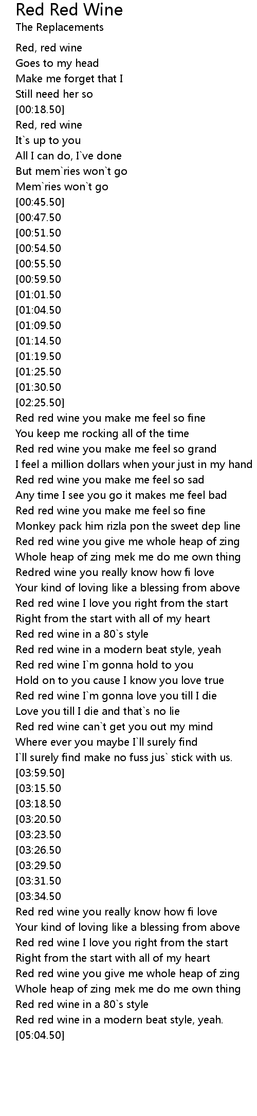 Red red wine I`m gonna love you till I die |