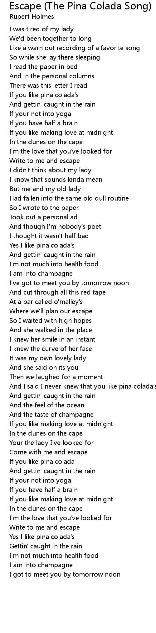 And I said I never knew that you like pina colada's |