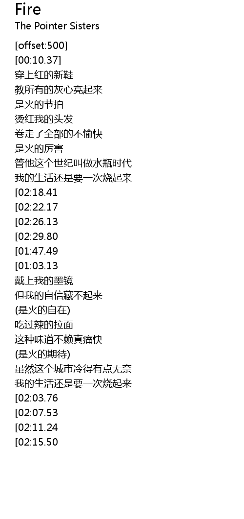 | [00:43.00] | 我的生活还是要一次烧起来 |