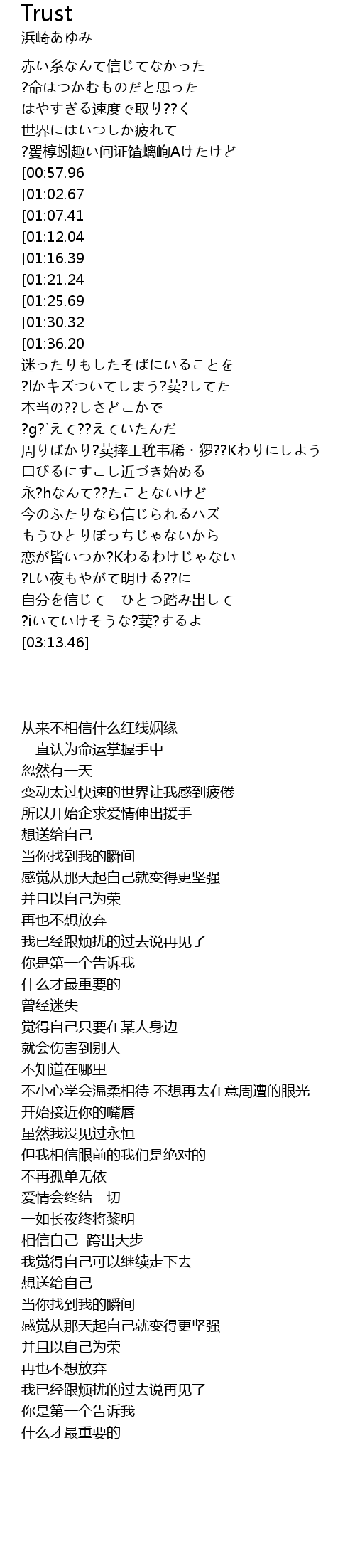 [03:41.01][01:07.41] あの日から??くなれる?荬?してた