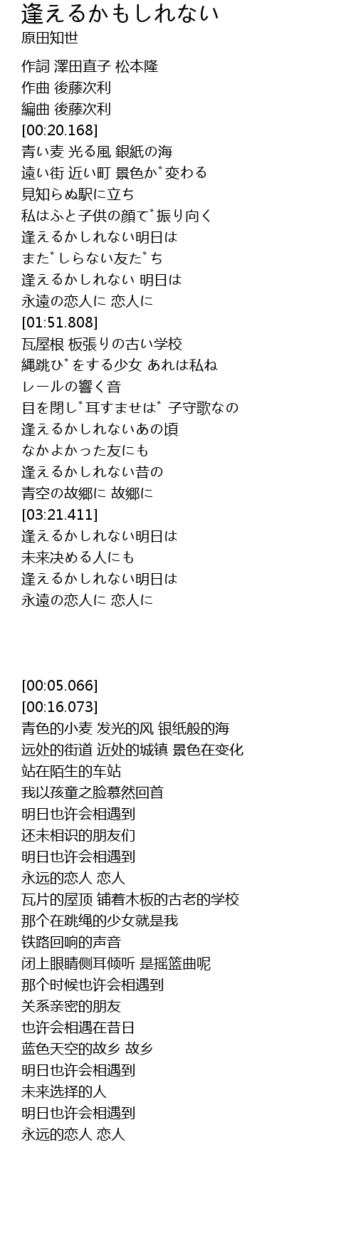 | [02:38.916] | 逢えるかしれないあの頃 |