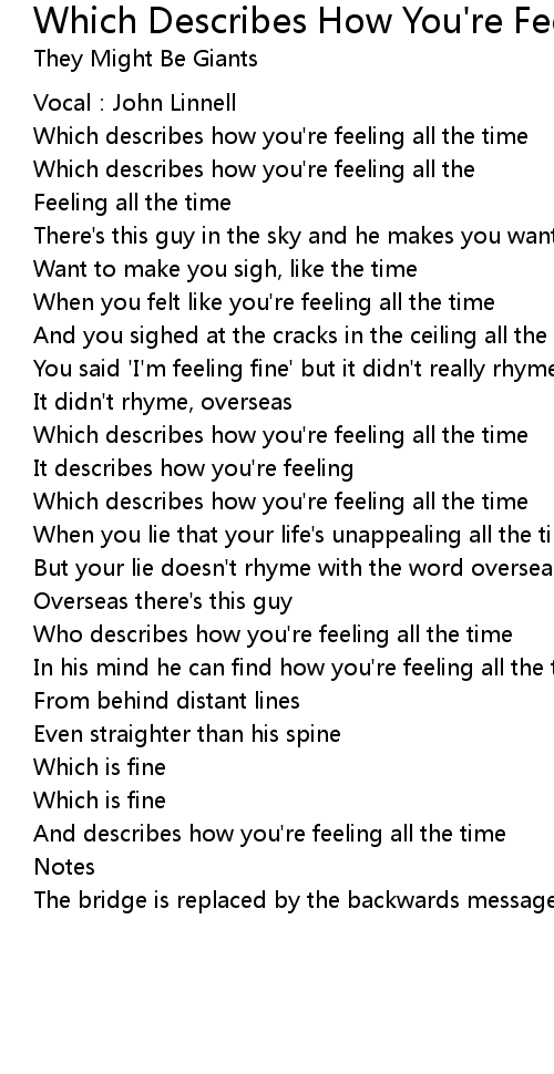 | Who describes how you're feeling all the time | |